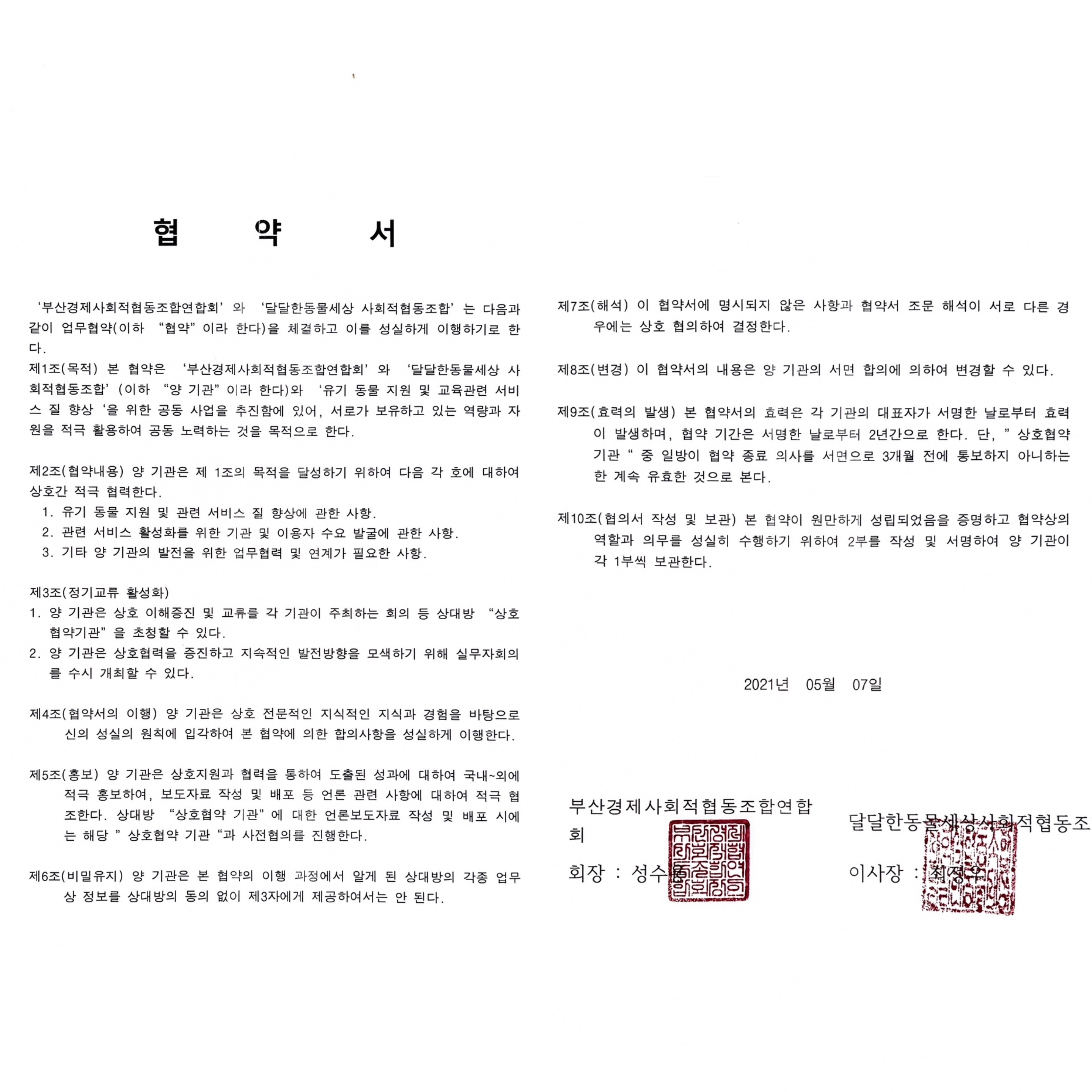 달달한동물세상 사회적협동조합은 - 부산경제사회적협동조합연합회와