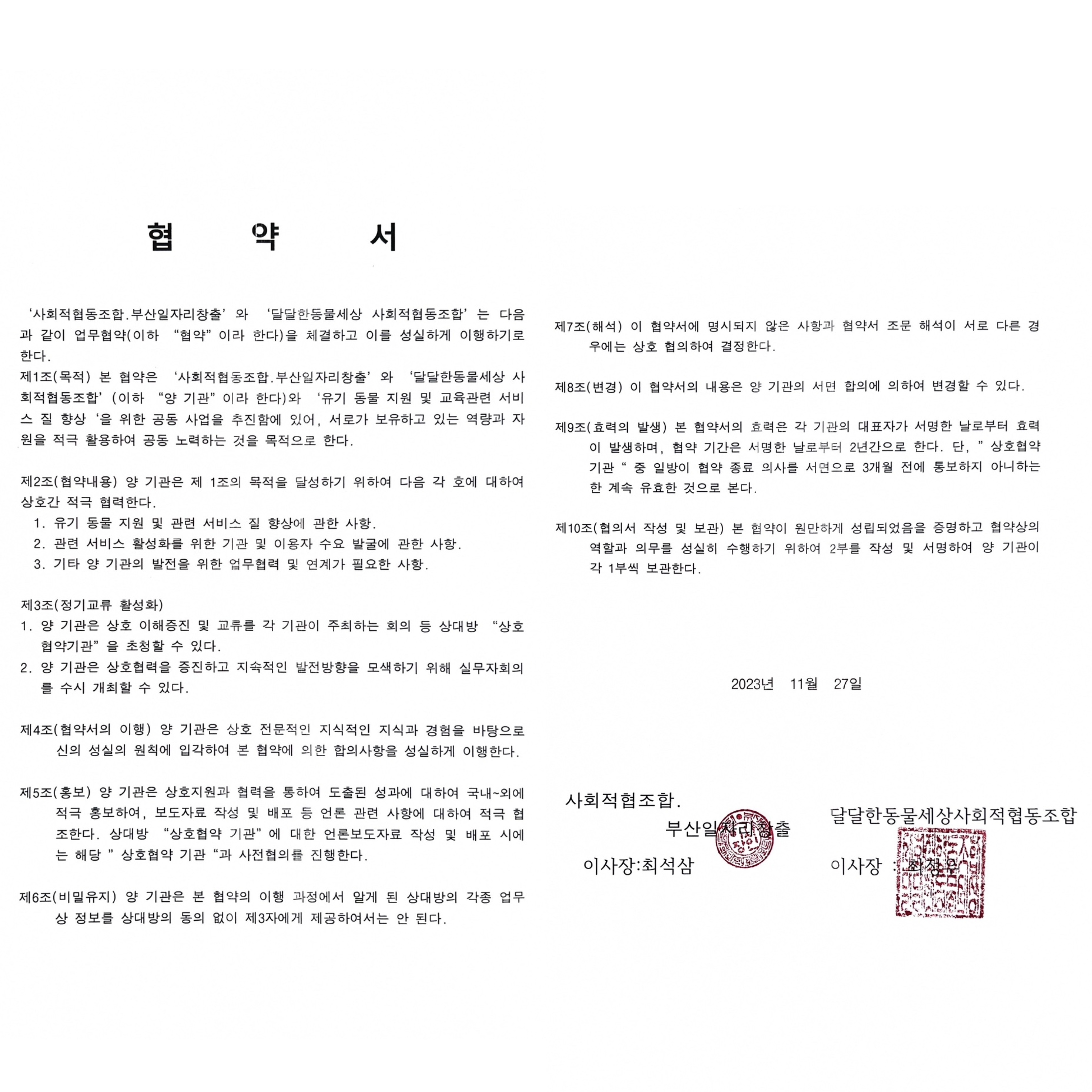※ 달달한동물세상 사회적협동조합 -사회적협동조합. 부산일자리창출