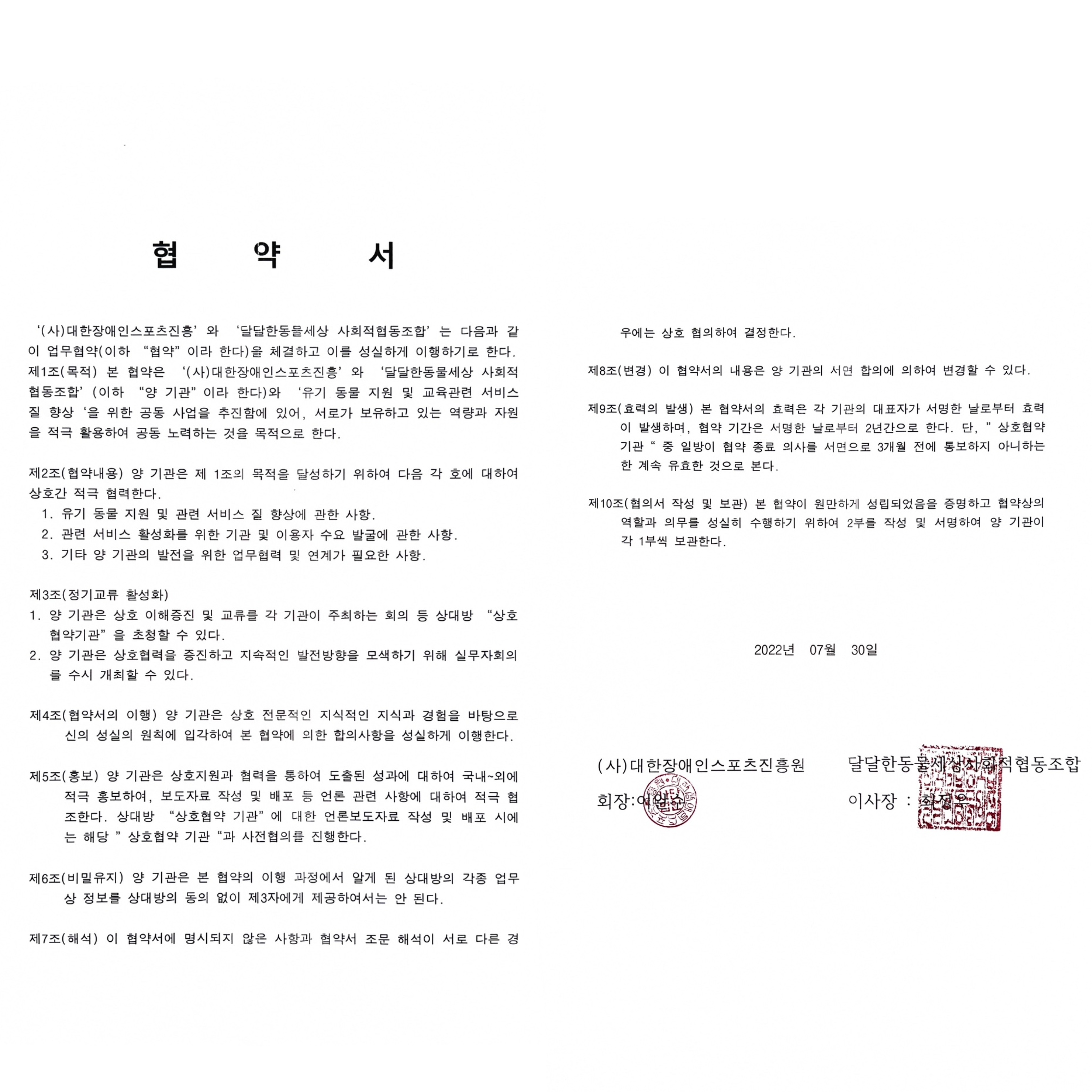 달달한동물세상 사회적협동조합은 - (사) 대한장애인스포츠진흥과